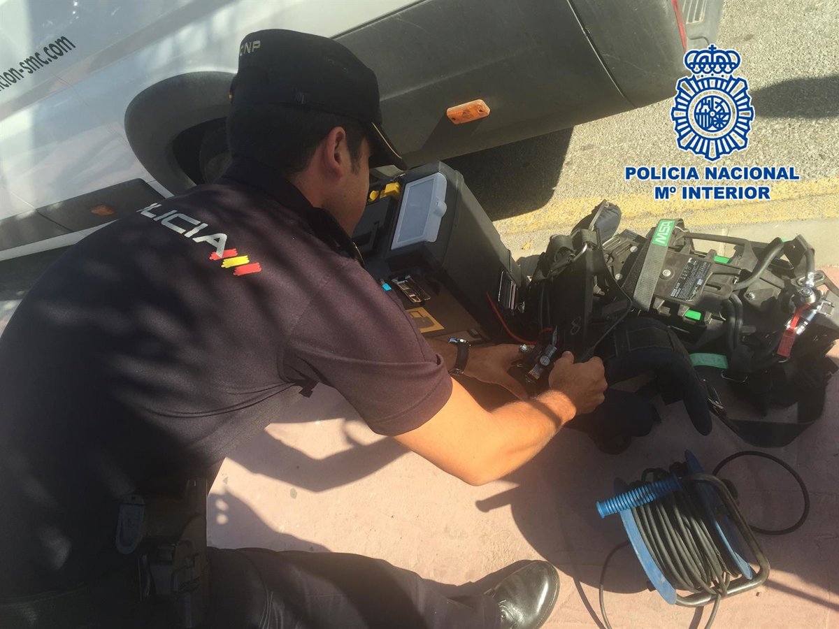 En el transcurso de las pesquisas, los investigadores hallaron un vehículo, propiedad de una empresa malagueña de servicio técnico de prevención de incendios, con la cerradura del habitáculo trasero forzada y abierta, con material similar al investigado en su interior. Una vez hechas las indagaciones pertinentes, los agentes constataron que todo el material recuperado pertenecía a la empresa aludida.