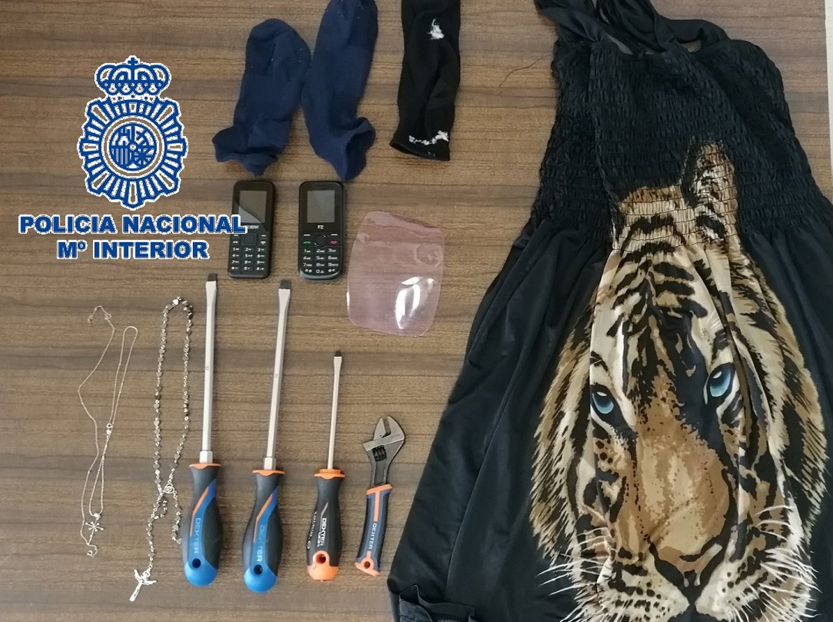 Los agentes han intervenido a las sospechosas diverso material para el robo con fuerza como un trozo de plástico, destornilladores, llave inglesa, unos calcetines que usaban a modo de guantes, ropa de muda --para cambiarse rápidamente en el caso de ser detectadas dificultando la identificación por la Policía--, así como dinero en efectivo y unas joyas.