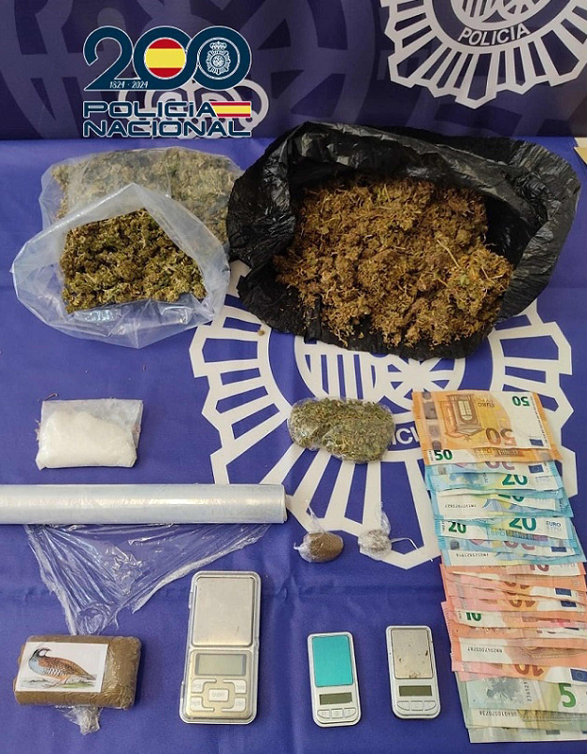 En el inmueble fueron localizados e intervenidos 98 gramos de hachís, 406 gramos de marihuana, 495 euros, una motocicleta, cuatro básculas de precisión y diversos útiles para la distribución y venta. El detenido y las diligencias policiales fueron puestos a disposición del Juzgado de Instrucción número 3 de Torremolinos.