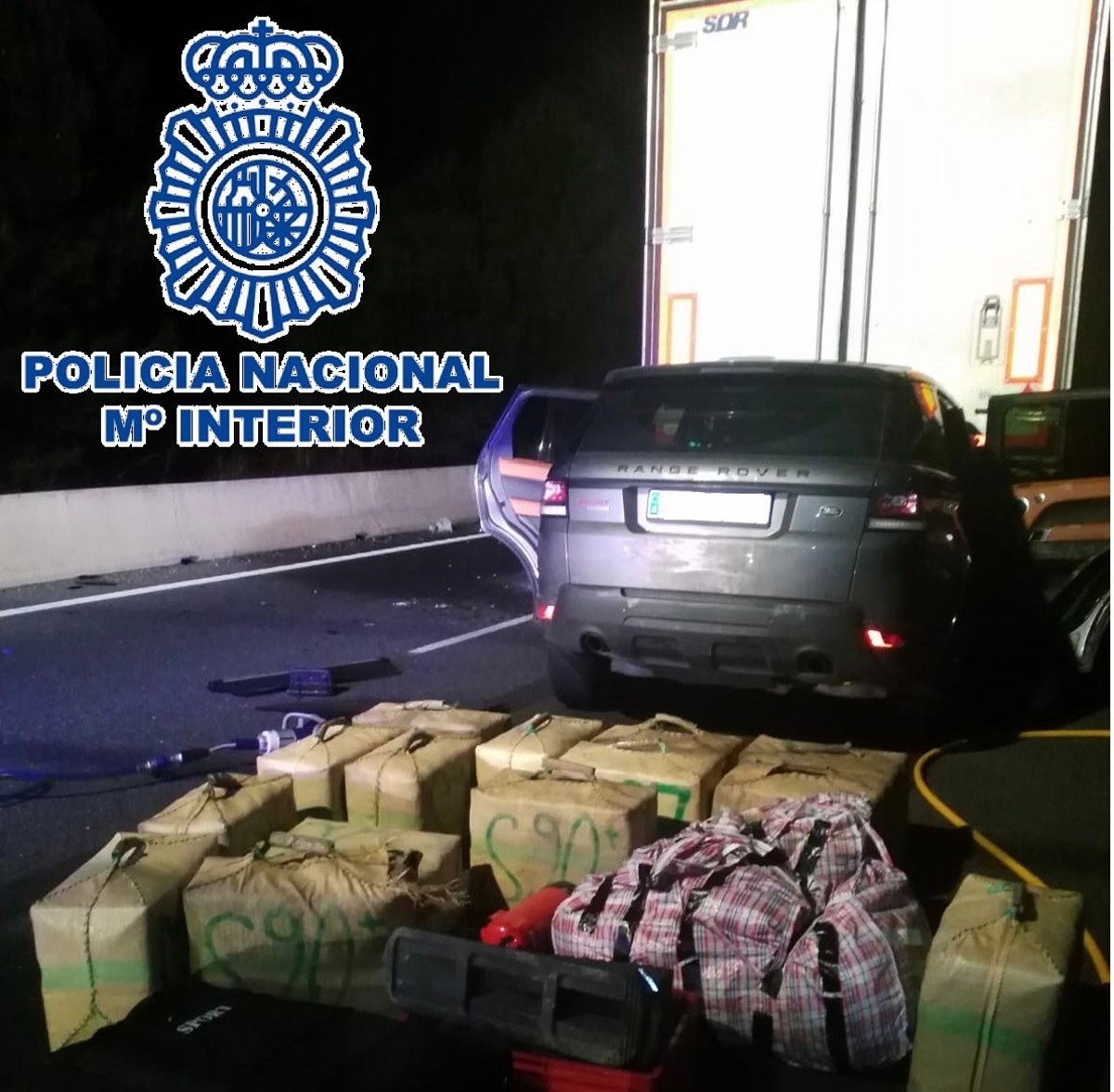 Agentes de la Policía Nacional han detenido a un joven al que intervinieron dentro de su vehículo 450 kilos de hachís y 28 de marihuana. El hombre fue arrestado a raíz de una intervención policial tras un accidente ocurrido en Las Pedrizas entre un vehículo todoterreno y un camión.