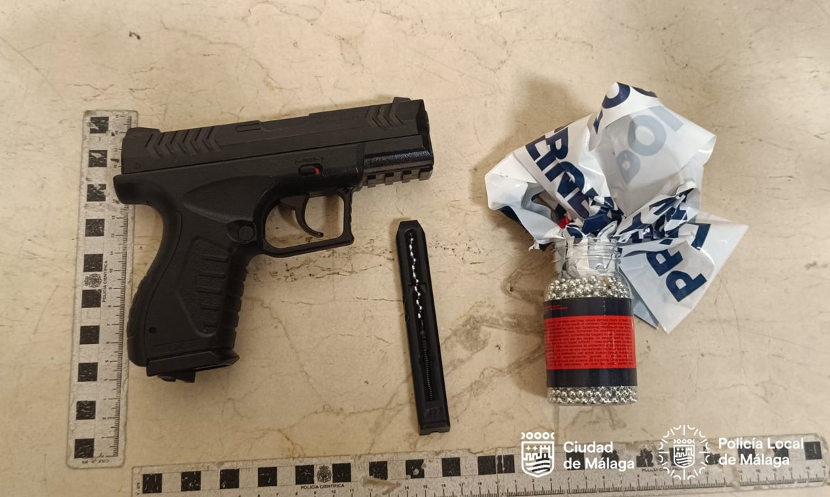 La Policía Local de Málaga han detenido a un individuo de 36 años de edad como presunto autor de los delitos de lesiones y daños, tras disparar con una pistola de aire comprimido a un vecino, que sufrió un impacto de un balín en la mejilla, además de causar daños en la puerta de una casa contigua y en un vehículo estacionado.