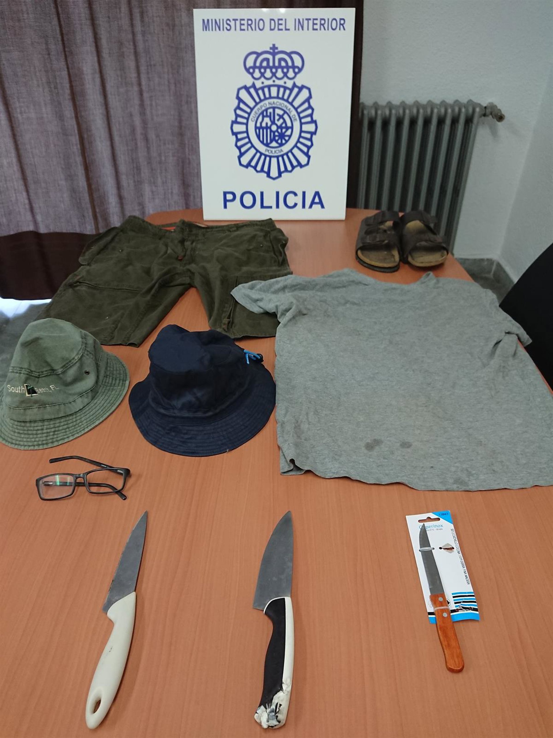 Tras varias gestiones, los agentes constataron que el individuo que se encontraba detrás de los tres robos era un vecino de la zona de 43 años. Una vez identificado, establecieron un dispositivo para lograr su localización y detención. Finalmente, el pasado sábado, era arrestado como presunto autor de los hechos investigados. En su vivienda los agentes hallaron el cuchillo utilizado para la comisión de los robos así como las gafas graduadas que normalmente utilizaba y de las que perdió un cristal en su huida, entre otros efectos.