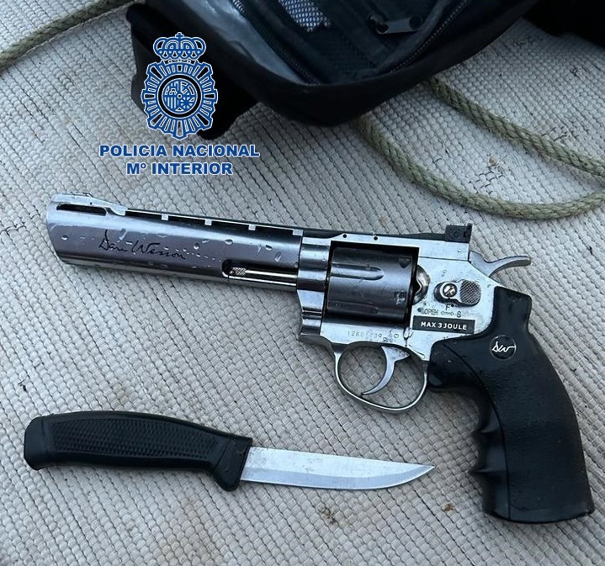 Para recuperar el arma y el cuchillo lanzados al mar se solicitó la colaboración urgente de un buzo del Cuerpo de Bomberos de Marbella. Tras una rápida actuación, consiguió recuperar las armas del fondo y entregarlas al grupo de policía judicial de la Comisaría de Marbella que se había hecho cargo de la investigación. La supuesta arma de fuego resultó ser un revolver simulado, con apariencia de arma real.