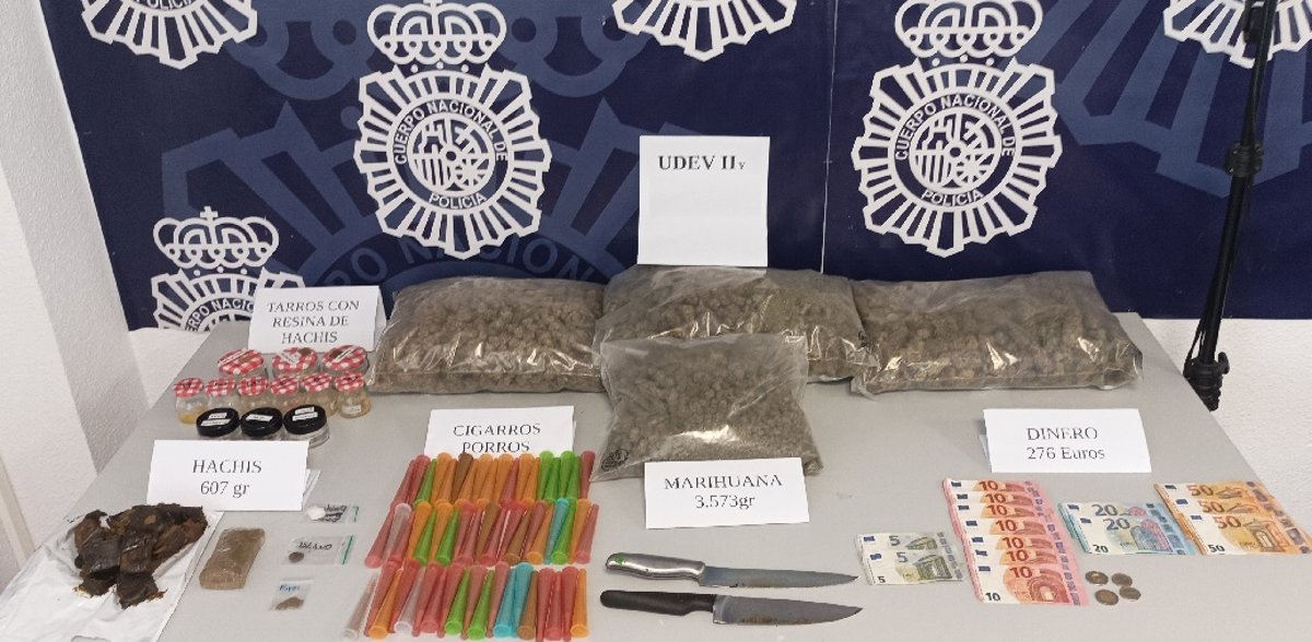 Las numerosas quejas vecinales dieron lugar a una investigación que finalizó con la aprehensión de 3.550 gramos de marihuana, 620 gramos de hachís, 276 euros y dos cuchillos de grandes dimensiones, ha indicado la Policía Nacional en un comunicado.