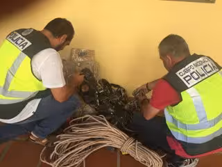 Además, en un inmueble próximo al domicilio de uno de los investigados, los agentes recuperaron los efectos procedentes del robo: cinco arneses, cuatro rollos de cuerdas de 100 metros para trabajos verticales, un rollo de alargadera de electricidad de 25 metros, cinco descendedores, dos equipos de transmisiones, 22 mosquetones y cuatro tablas de madera con sus respectivos aparatos de descuelgue y seguridad.