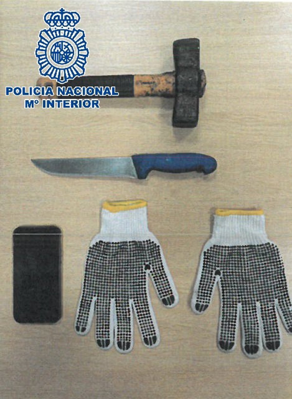 En la inspección del referido automóvil, los agentes localizaron un martillo, unos guantes y un cuchillo de 16 centímetros de hoja. Además, se recuperó un patinete eléctrico sustraído momentos antes de uno de los vehículos violentados.