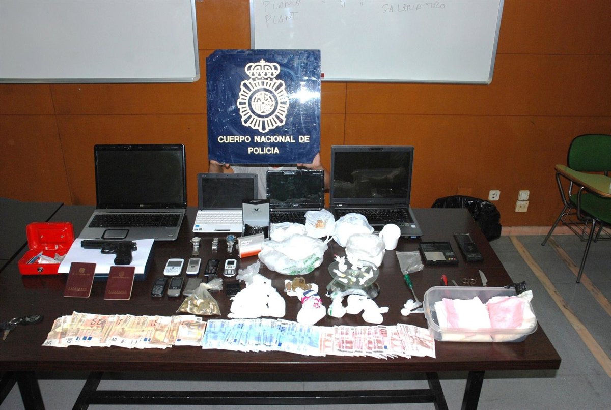 En él la Policía se incautó de una pistola simulada, tres balanzas de precisión, cuatro ordenadores portátiles y siete teléfonos móviles, entre otros efectos.