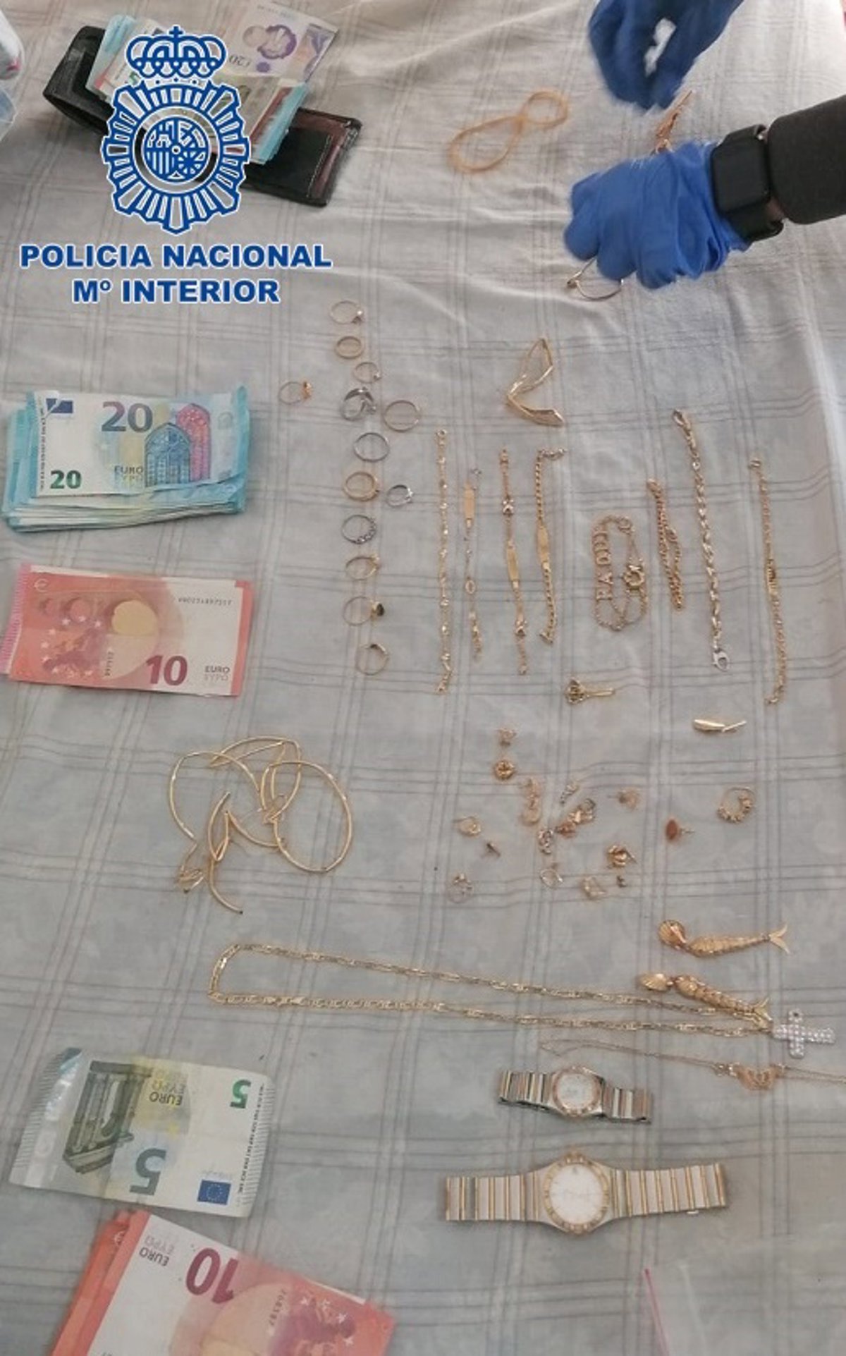 En la diligencia de entrada y registro en el domicilio de los sospechosos, los investigadores han intervenido una pistola -que resultó ser simulada-; 10.000 euros en efectivo; herramientas para perpetrar los asaltos; un kit reactivo para comprobar si un efecto es de oro; joyas; una colección de monedas y sellos; ropa implicada en los hechos delictivos; dos vehículos; documentación; y bolsa de marihuana.