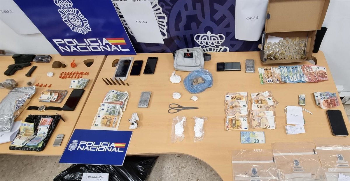 En ellos se han intervenido 190 gramos de cocaína, 93,36 gramos de heroína, 180,4 gramos de hachís, cuatro gramos de marihuana y 168 plantas de marihuana; además de útiles para la preparación de las dosis; material de corte; básculas de precisión; 22.650 euros en efectivo; un revólver; una pistola detonadora; una pistola táser; munición y dos armas blancas.