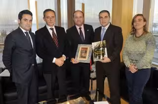 El alcalde de Antequera (Málaga), Manolo Barón, y el presidente de la Agrupación de Cofradías de Semana Santa, Francisco Ruiz, han entregado al presidente de la Diputación Provincial de Málaga, Elías Bendodo, el expediente informativo realizado que avala la propuesta de solicitar a dicha institución la declaración de la tradición de 'correr la vega' en la Semana Santa de Antequera como Fiesta de Singularidad Turística Provincial.