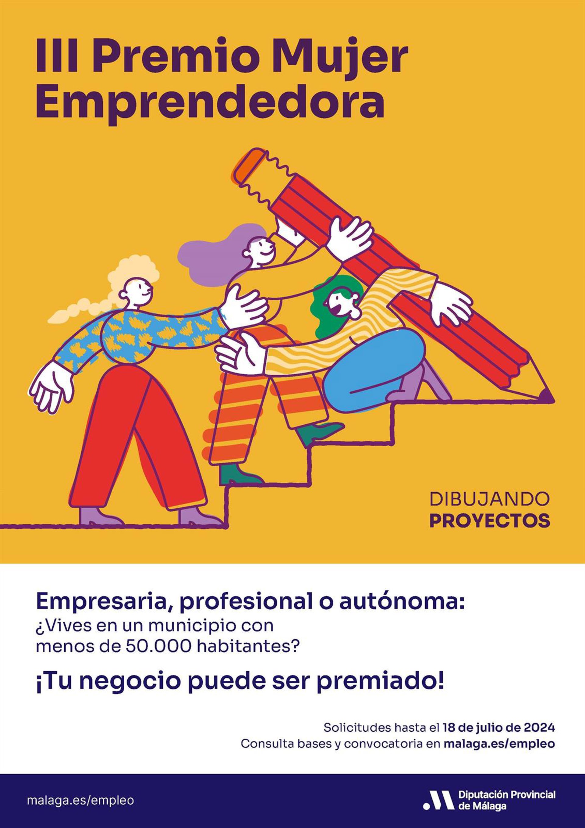 El Boletín Oficial de la Provincia de Málaga número 124 ha publicado, con fecha 27 de junio, la convocatoria para la concesión el III Premio Mujer Emprendedora de la Diputación de Málaga correspondiente a la anualidad 2024. Dotado con 9.000 euros, se concederán tres galardones correspondientes a cada una de las modalidades: reactivación de las zonas despobladas; innovación y emprendimiento social; y recuperación y conservación de las tradiciones y cultura del territorio.