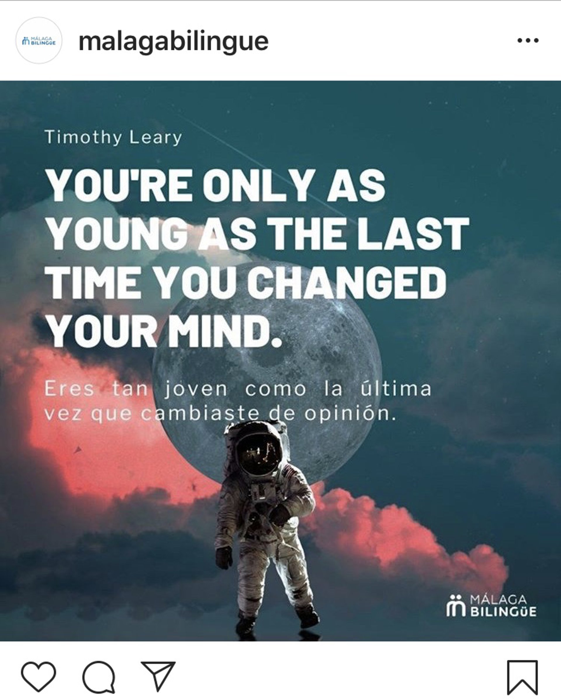 'Málaga Bilingüe', a través de sus perfiles en redes sociales, publica también diariamente contenidos de vocabulario, curiosidades, consejos de interés e información sobre actividades y eventos que puedan servir a los seguidores para poner en práctica sus habilidades con el idioma o para familiarizarse con la cultura de los países angloparlantes.
