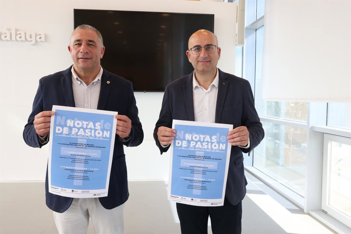 El diputado de Cultura, Manuel López Mestanza, junto a José Sánchez, presidente de la Asociación Provincial de Bandas de Málaga, han presentado el evento. - DIPUTACIÓN DE MÁLAGA