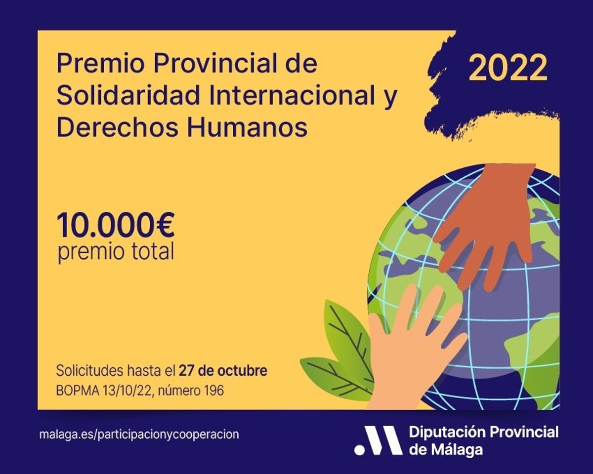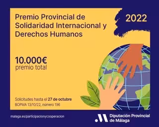 La Diputación de Málaga ha publicado este viernes en el Boletín Oficial de la Provincia (Bopma) la convocatoria 2022 del Premio Provincial de Solidaridad Internacional y Derechos Humanos, con el fin de distinguir y reconocer a aquellas personas y organizaciones, relacionadas con la provincia, que, a nivel individual o colectivo hayan contribuido de forma relevante a la promoción de la solidaridad internacional y los derechos humanos.