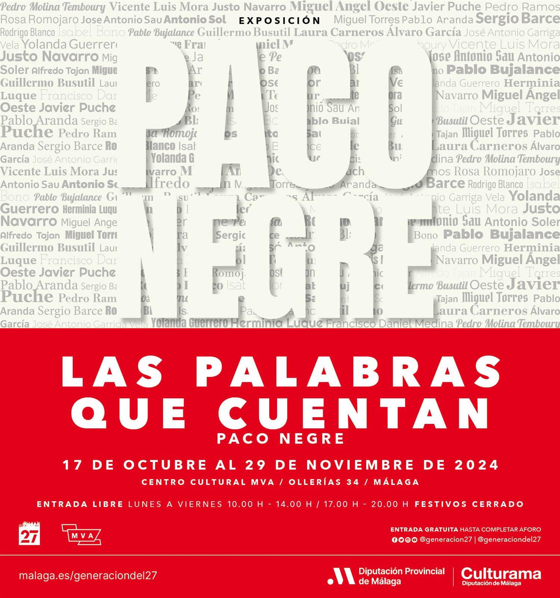 Cartel de la exposición de Paco Negre 'Las palabras que cuentan', abierta al público hasta el 29 de noviembre. - DIPUTACIÓN DE MÁLAGA