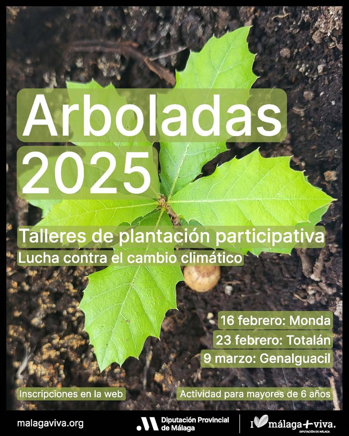 Para las primeras de las arboladas, las personas interesadas en participar pueden inscribirse a través de la web www.malagaviva.org a partir de este viernes, día 7. Para la actividad en Totalán, el plazo de inscripción se abrirá el 14 de febrero; y para la de Genalguacil, el 9 de marzo.