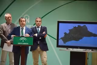 Bendodo ha comparecido este miércoles junto al delegado del Gobierno andaluz en Málaga, José Luis Ruiz Espejo, y al responsable territorial de Medio Ambiente, Adolfo Moreno, quien le ha entregado la resolución que autoriza la construcción del tramo 19, el de Estepona.