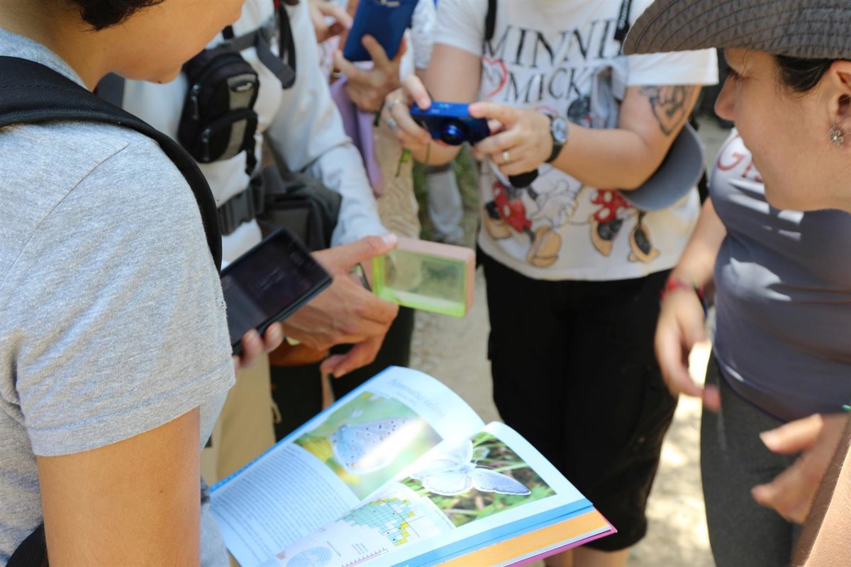 Asimismo, se hará una breve ruta para observar e identificar mariposas en libertad y en mano, mediante el uso de manga entomológica y una caja de observación, en la cual pueden verse inmovilizadas las mariposas sin infligirles daño alguno.