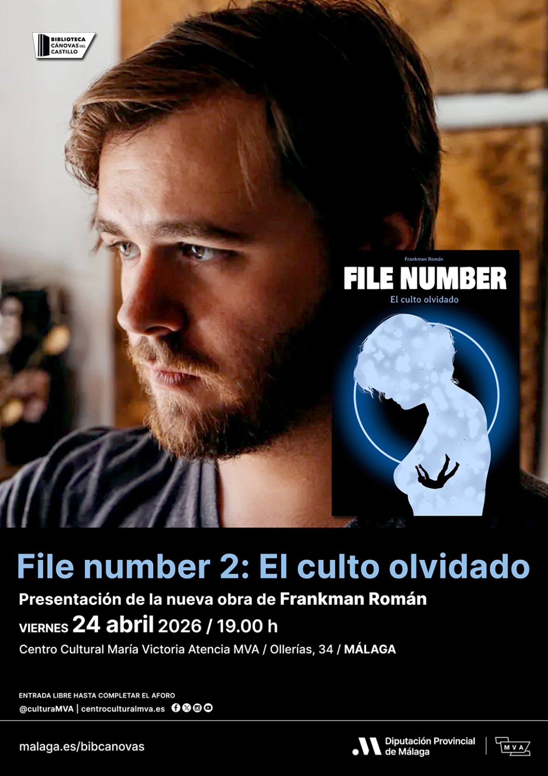 El viernes 24 de abril a las 19,00 horas, en la sala de conferencias de dicha biblioteca, tendrá lugar la presentación del cómic del autor malagueño Frankman Román 'File number 2: El culto olvidado', publicado por Cartem Cómics, dirigido a público adulto y amantes de la novela negra, el thriller y el diseño gráfico. La entrada será libre hasta completar el aforo.