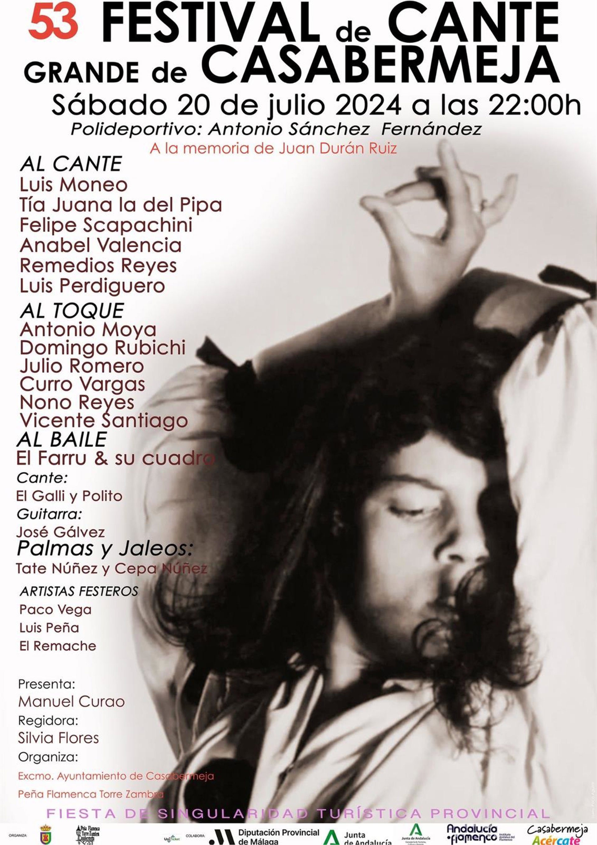 El próximo sábado, 20 de julio, tendrá lugar la 53º edición del Festival de Cante Grande en Casabermeja. - DIPUTACIÓN DE MÁLAGA