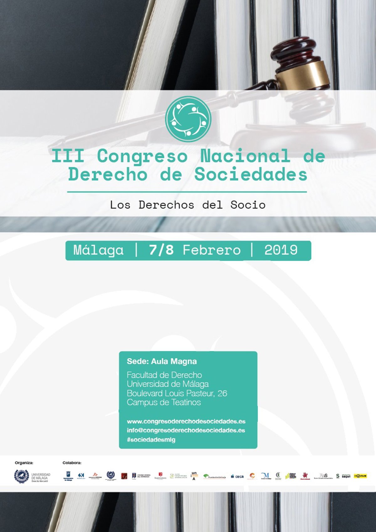 El Área de Derecho mercantil de la Universidad de Málaga (UMA), en colaboración con Promalaga y la Diputación malagueña, han organizado la tercera edición del Congreso Nacional de Derecho de Sociedades, que se celebrará los días 7 y 8 de febrero en el Aula Magna de la Facultad de Derecho de la UMA.