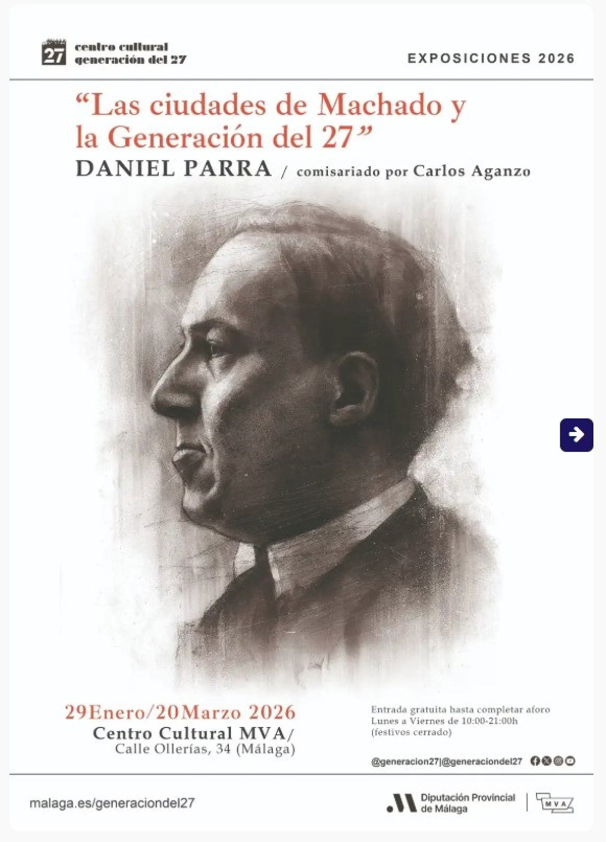 Cartel de la exposición 'Las ciudades de Machado y la Generación del 27', que alberga el Centro Cultural María Victoria Atencia hasta el 20 de marzo. - DIPUTACIÓN DE MÁLAGA