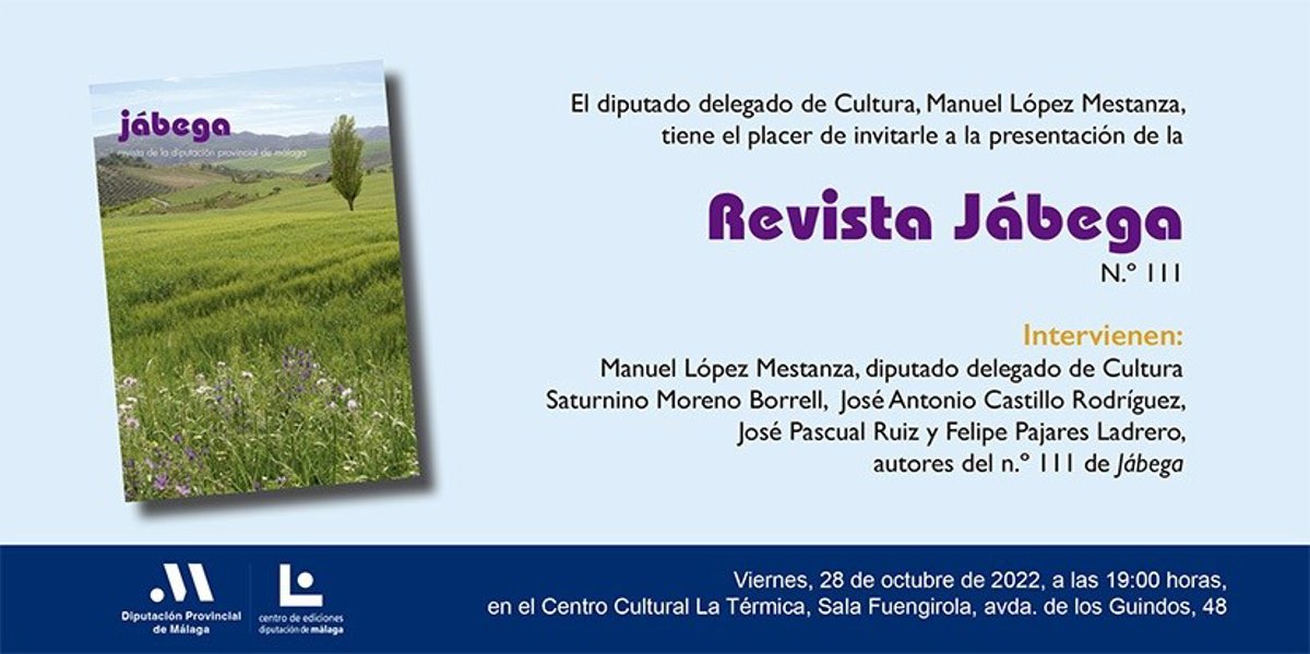 La Diputación de Málaga presenta este viernes, 28 de octubre, en el centro de cultura contemporánea de la Diputación de Málaga, La Térmica, en la avenida de los Guindos, el número 111 de la revista 'Jábega' editada por el Centro de Ediciones de la Diputación (Cedma).
