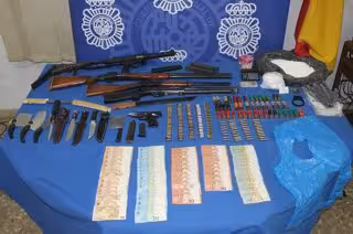 Según la investigación, el hombre detenido en un inicio por amenazas graves guardaba en el domicilio de un vecino próximo, de 61 años, un arsenal formado por tres escopetas, dos pistolas y un subfusil ametralladora con culatín desplegable, además de diversos útiles y sustancias para el corte de estupefacientes.
