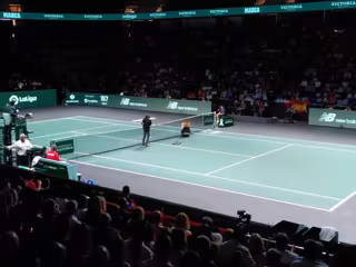 Dos activistas han saltado a la pista este miércoles durante la celebración del partido de cuartos de final de la Copa Davis en Málaga y se han intentado encaramar a la red, parando el juego en protesta por la emergencia climática y alimentaria.