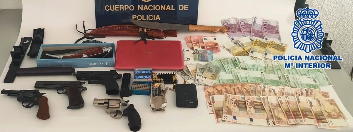 En el marco de la operación 'Spider' se han practicado registros en el club y en los domicilios de los detenidos donde se han intervenido cinco armas de fuego --una de ellas modificada para ser usada con silenciador--, munición, un vehículo de alta gama, 6.900 euros en efectivo y 390 gramos de hachís, según ha informado la Policía Nacional a través de un comunicado.