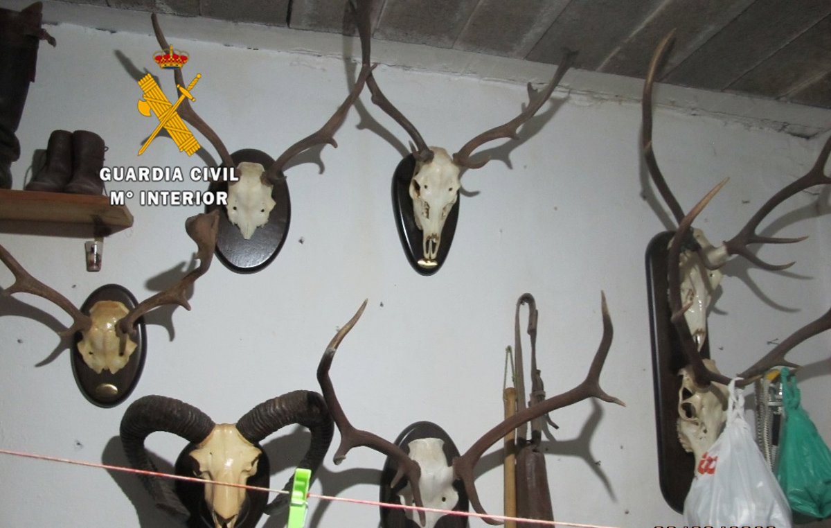 Así, tras comprobar la carencia de autorización del titular del acotado para el desarrollo de la actividad de caza, los agentes procedieron a su investigación por delitos contra la flora y la fauna silvestre y por la tenencia de medios prohibidos, confeccionándose las actas denuncia en materia de caza pertinentes, así como le fueron aprehendidos más de 100 trofeos de caza de procedencia ilícita.