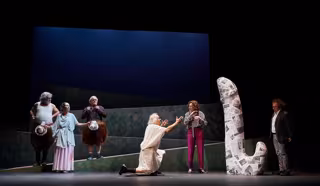 El público de Anfitrión podrá ver en acción a Els Joglars el próximo 6 de julio en el Castillo de Sohail. Sobre el escenario Ramon Fontser, Pilar Sáenz, Dolors Tuneu, Xevi Vil, Alberto Castrillo-Ferrer y Angelo Crotti.