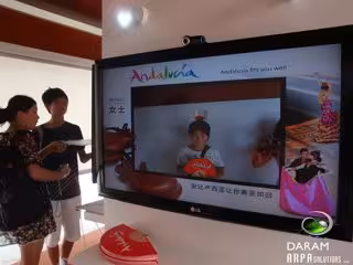 En el otro puesto interactivo 'Andalucía en tus manos', los visitantes podrán disfrutar de un vídeo promocional de Andalucía en realidad aumentada, mientras que en los puestos interactivos 'Andalucía te sienta bien', mediante otra aplicación de realidad aumentada que detecta caras de personas en tiempo real y de forma automática, permitieron al usuario verse a sí mismos caracterizados con un sombrero cordobés o de flamenca con una peluca, una peineta y una flor.