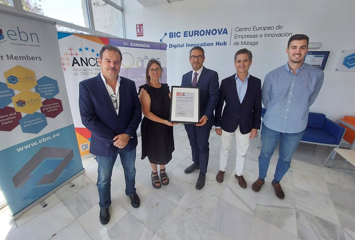 El acto de entrega se ha celebrado en el Centro Europeo de Empresas e Innovación de Málaga BIC Euronova, de la mano del delegado territorial de Economía, Hacienda, Fondos Europeos y de Política Industrial y Energía de la Junta de Andalucía en Málaga, Carlos García, también presidente de BIC Euronova; acompañado por el director general del centro, Álvaro Simón de Blas, en calidad de presidente de Ances.