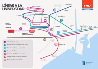 Líneas de la EMT que llegan al campus universitario de Teatinos - AYUNTAMIENTO DE MÁLAGA