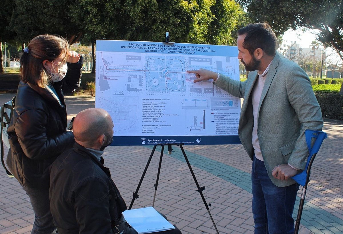 Los concejales de Ordenación del Territorio y del distrito Carretera de Cádiz, Raúl López y Luis Verde, respectivamente, han presentado el primer carril running con el que contará la ciudad. En concreto, se situará en el entorno del parque Litoral que cuenta con una superficie total de más de 50.000 metros cuadrados.