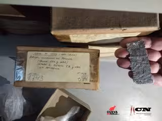 Esta pieza ha sido hallada en una de las revisiones de vestigios y productos arqueológicos obtenidos en las primeras intervenciones efectuadas en la cueva, con reflejo parcial o incluso nulo en informes y memorias. Dicha labor de análisis y catalogación se enmarca en los objetivos del Proyecto General de Investigación Interdisciplinar que se lleva a cabo en la cavidad.