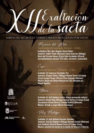 La cuarta y última sesión de la XII Exaltación de la Saeta 'Mairena del Alcor, Écija, Utrera y Málaga rezan juntas por saetas' se celebrará el próximo sábado, 29 de marzo, a las 20.30 horas, en la iglesia de San Juan, en Vélez-Málaga. La entrada es libre hasta completar aforo.