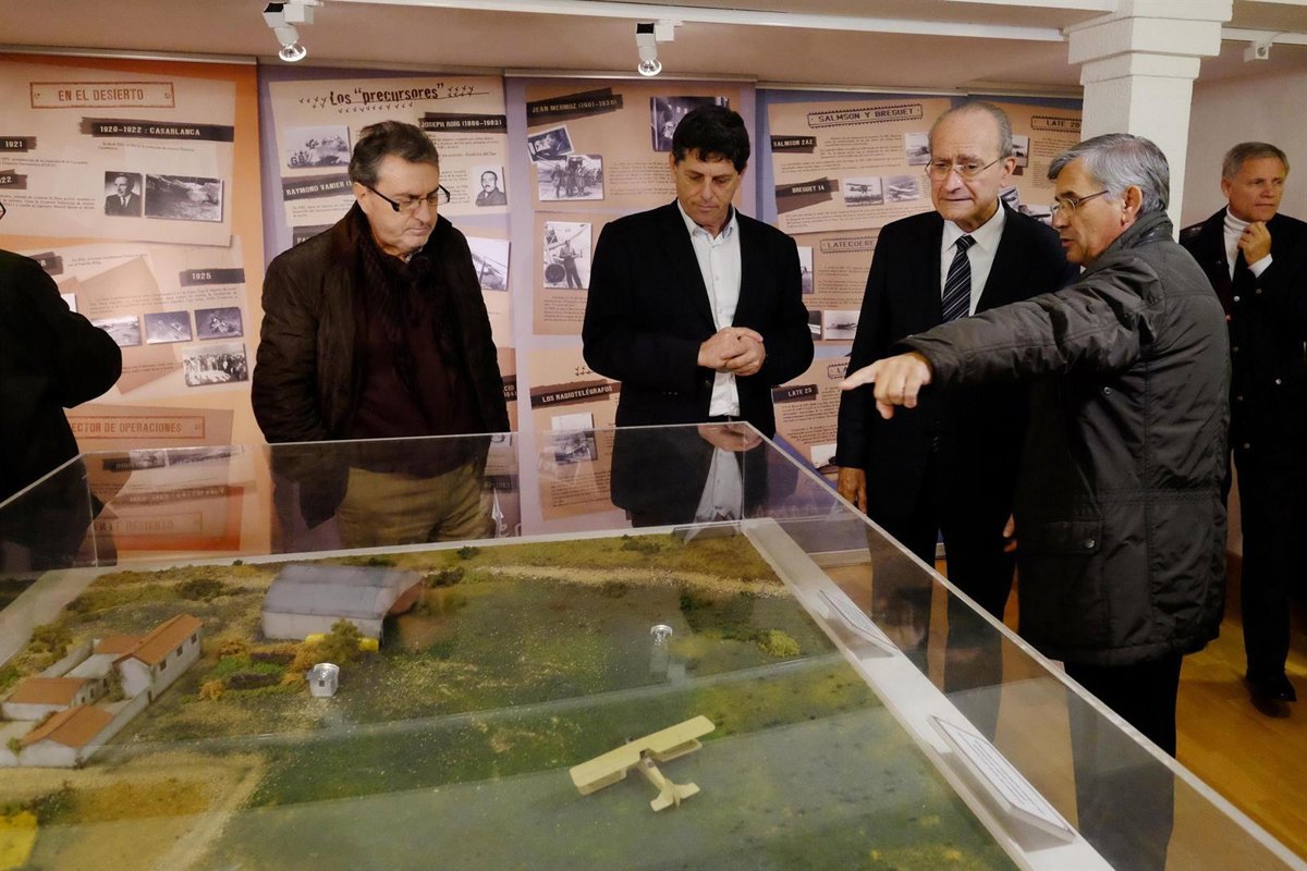El alcalde, Francisco de la Torre, y el director del Museo Aeronáutico de Málaga, Luis Utrilla, han inaugurado la exposición, donada por la Asociación de la Memoria Aeropostal (Toulouse).