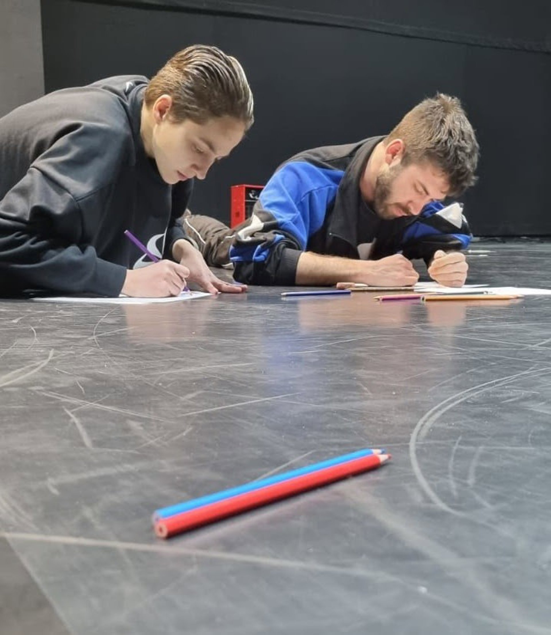 Laura Velman y Álex Rueda Oria (Azul y Rojo) en los ensayos de 'La gramática de los peces azules' - TEATRO CERVANTES
