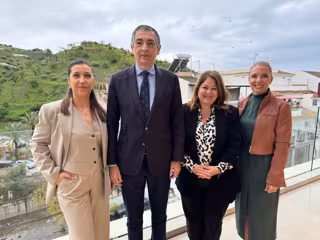 La alcaldesa de Algarrobo, Natacha Rivas; el secretario general de Agua de la Consejería de Agricultura, Pesca, Agua y Desarrollo Local, Ramiro Angulo; la diputada provincial de Fomento, Nieves Atencia; y la secretaria general de la FAMP, Yolanda Sáez. - FAMP