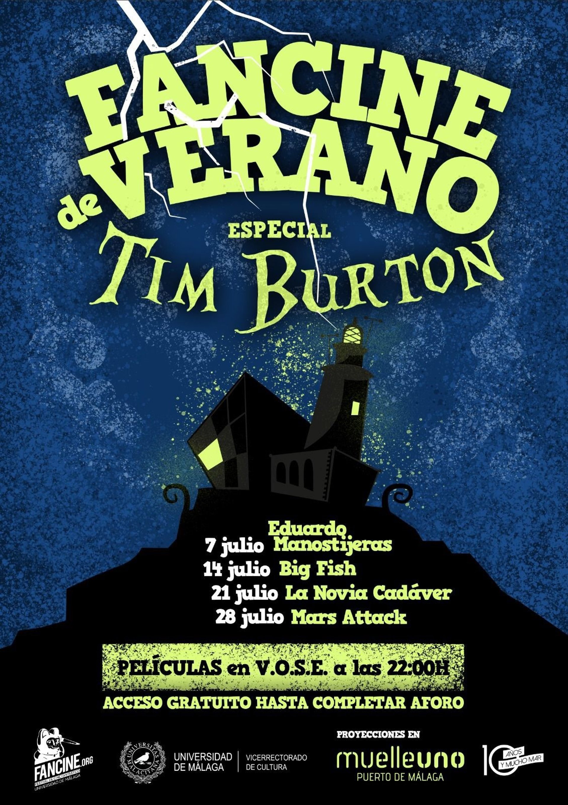'Fancine de Verano', una propuesta del festival de cine fantástico de la Universidad de Málaga (UMA), regresa al Muelle 1 con un tributo a Tim Burton a través de una selección de sus títulos más icónicos, que podrán verse cada jueves de este mes de julio de manera gratuita, en VOSE y frente al mar.