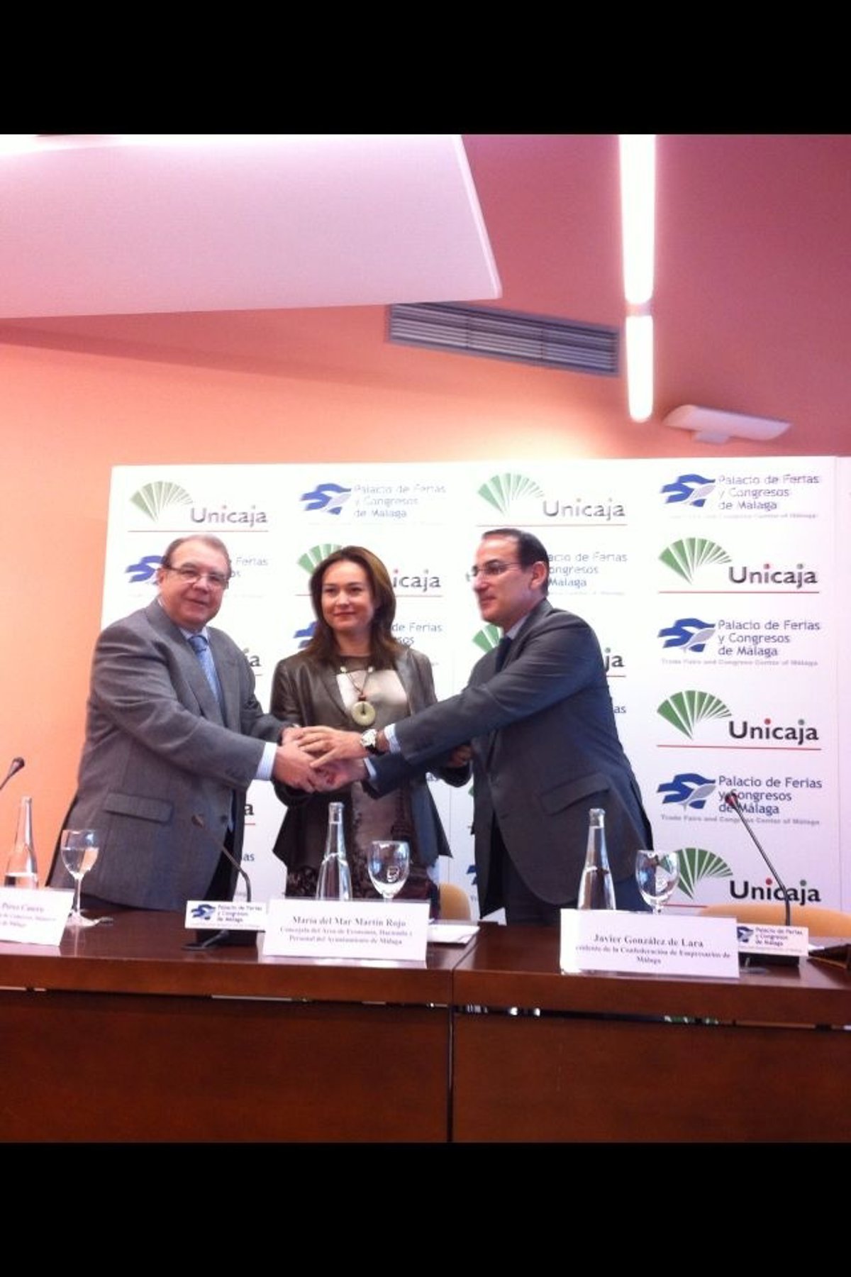 La rúbrica, que ha tenido lugar en el recinto ferial, se ha llevado a cabo por parte de la concejala del Área de Economía, Hacienda y Personal del Ayuntamiento de Málaga, María del Mar Martín Rojo; el presidente de la Confederación de Empresarios de Málaga, Javier González de Lara; y el presidente de la Cámara Oficial de Comercio, Industria y Navegación de la Provincia de Málaga, Jerónimo Pérez Casero.