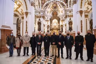 El alcalde de Málaga, Francisco de la Torre, acompañado por el obispo de Málaga, Jesús Catalá; el concejal de Vivienda, Francisco Pomares; y miembros de la Corporación municipal, ha visitado este miércoles la iglesia de los Santos Mártires tras la conclusión de las obras de rehabilitación y restauración integral que comenzaron en marzo de 2020.