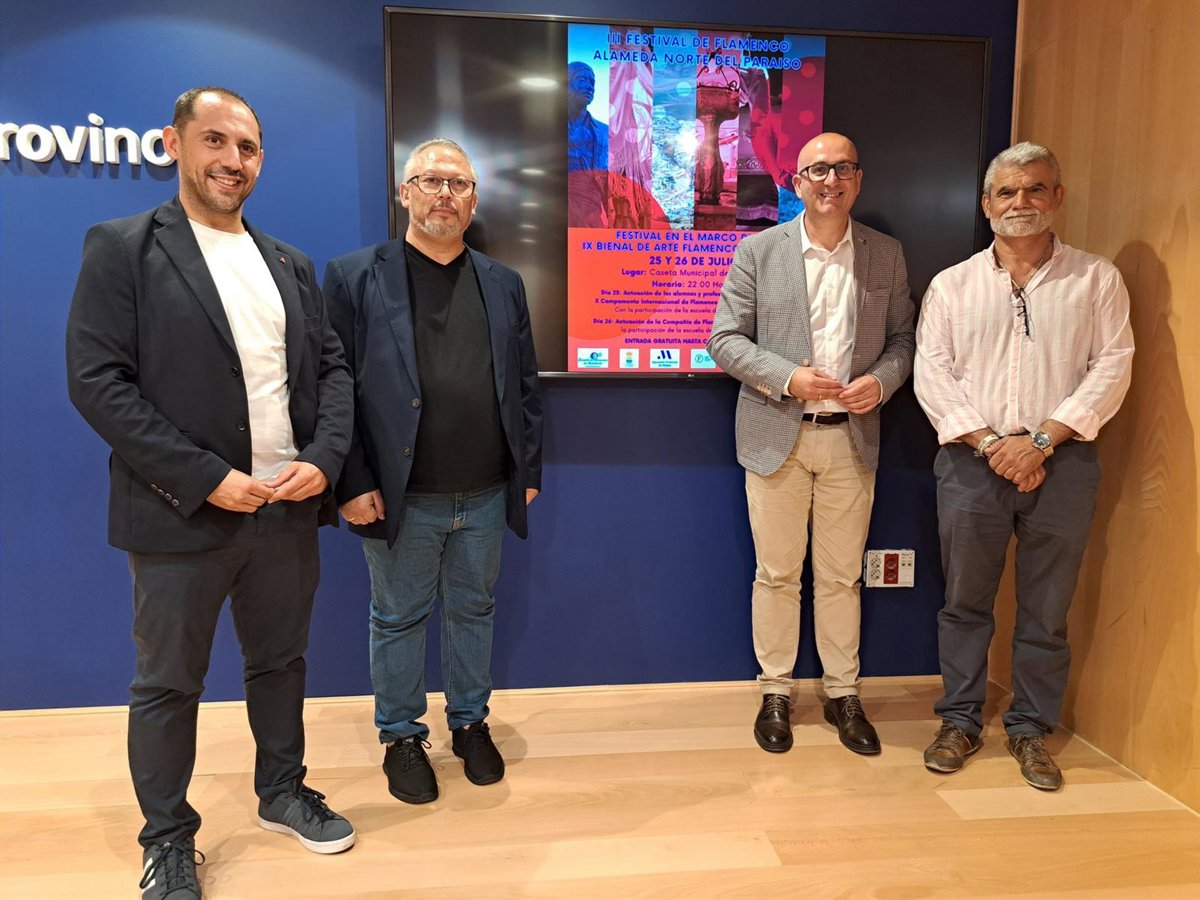 Así lo ha anunciado el vicepresidente de la Diputación y diputado de Cultura, Manuel López Mestanza, junto al alcalde de Alameda, José García; el presidente de la EFA, Luis Guillermo Cortés, y el director del Ceulaj, Sebastián Pérez, en la presentación del III Festival de Flamenco Alameda Norte del Paraíso.