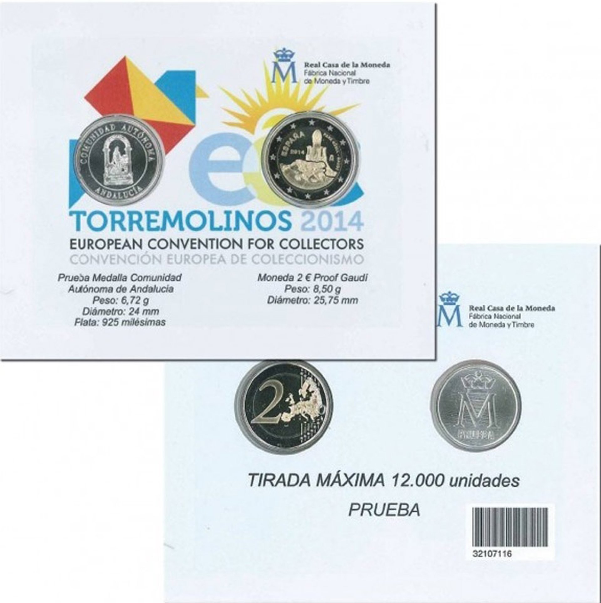 La Convención Europea de Coleccionismo, ECC 2014, que se celebra en el municipio malagueño de Torremolinos del 27 de febrero al 2 de marzo, será el escenario en el que la Fábrica Nacional de Moneda y Timbre (FNMT) presente un blister especial con una moneda de dos euros dedicada a Gaudí y una prueba en plata de la medalla de Andalucía, de 6,72 gramos de peso y un módulo de 24 milímetros.
