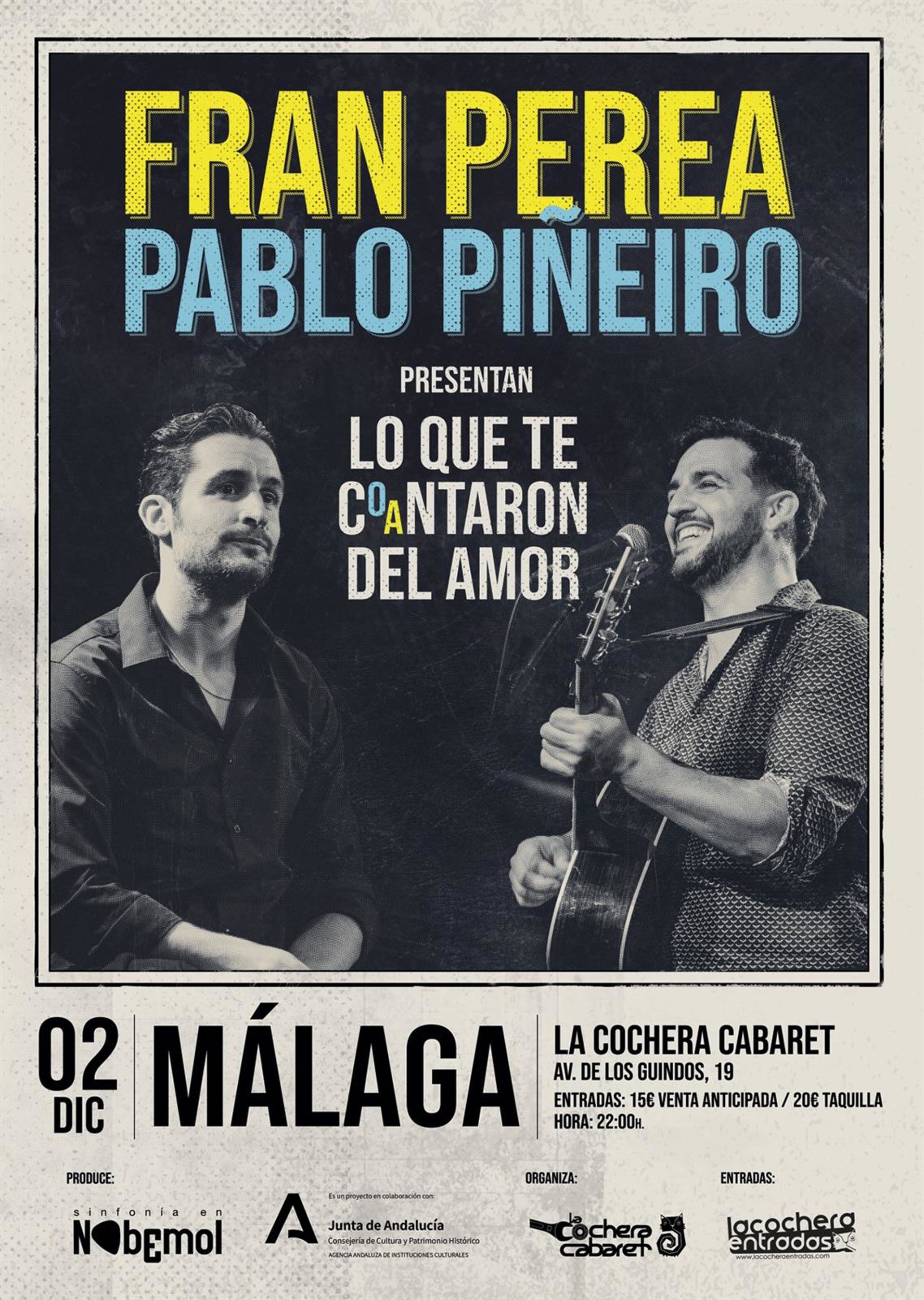 El cantante y actor Fran Perea visita esta semana Málaga junto a Pablo Piñeiro para presentar 'Lo que te co/antaron del amor', un cóctel cultural que combina reflexiones y vivencias amorosas, música y poesía. Será en La Cochera Cabaret este viernes, día 2 de diciembre.