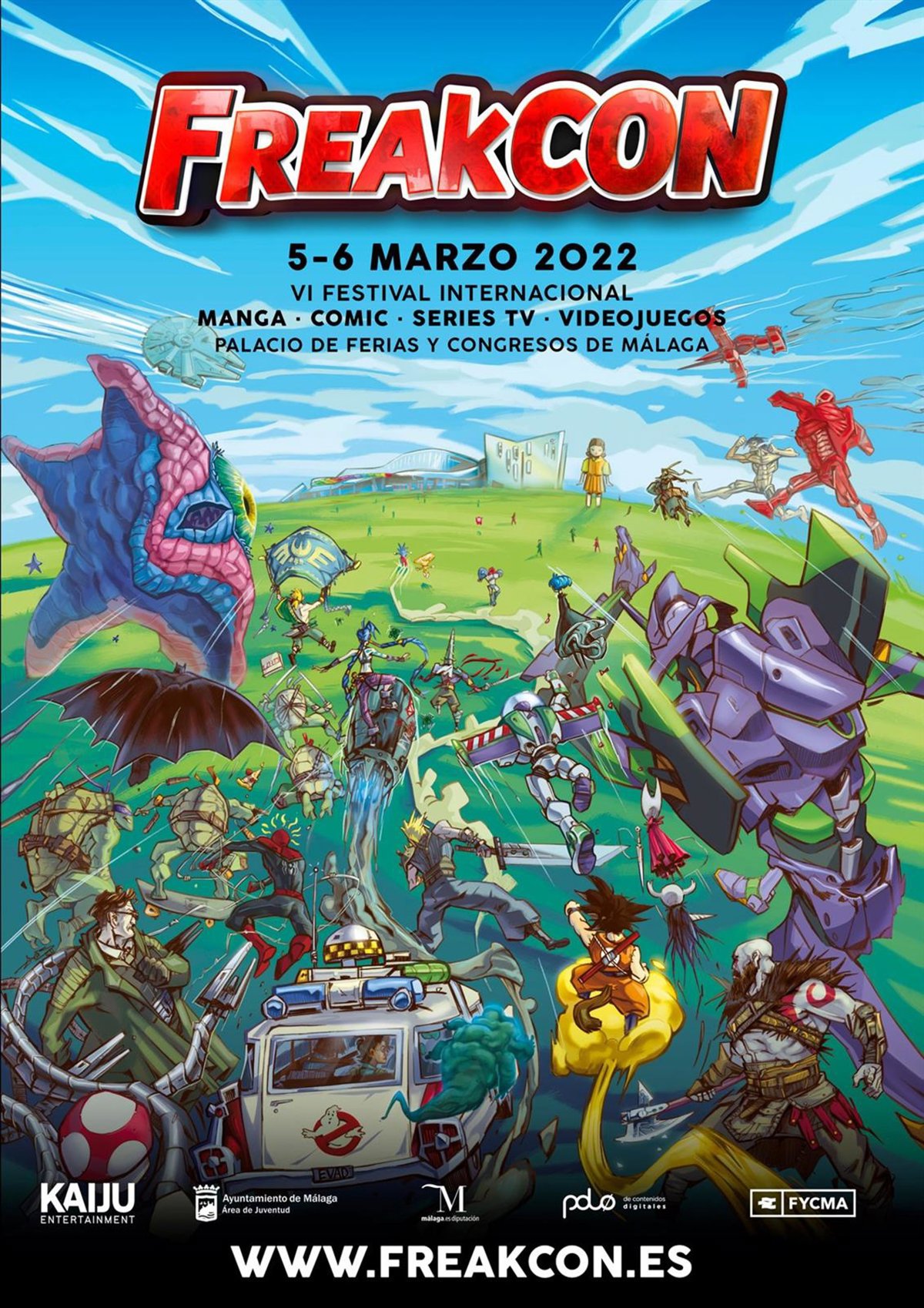 El cartel oficial de este quinto FreakCon, diseñado por Jacob Portillo, profesor del Máster de Arte 2D de EVAD, la Escuela Superior de Videojuegos y Arte Digital de Málaga, tiene referencias a algunos de los fenómenos cinematográficos, literarios y televisivos del momento, desde 'El juego del Calamar' hasta Spider-Man, pasando por 'The Legend of Zelda' y otros personajes icónicos.