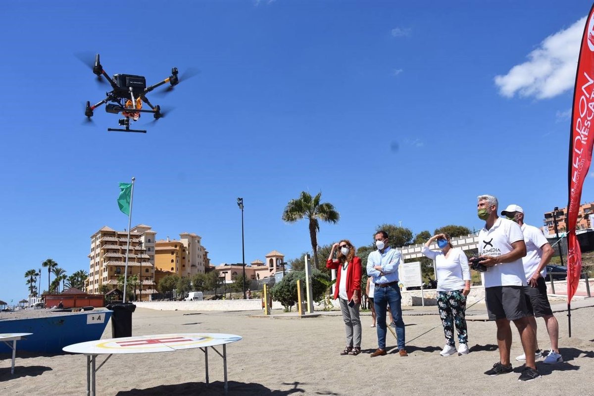 Demostración de vuelo de uno de los drones que realiza labores de socorrismo y salvamento en las playas de Fuengirola - AYUNTAMIENTO DE FUENGIROLA