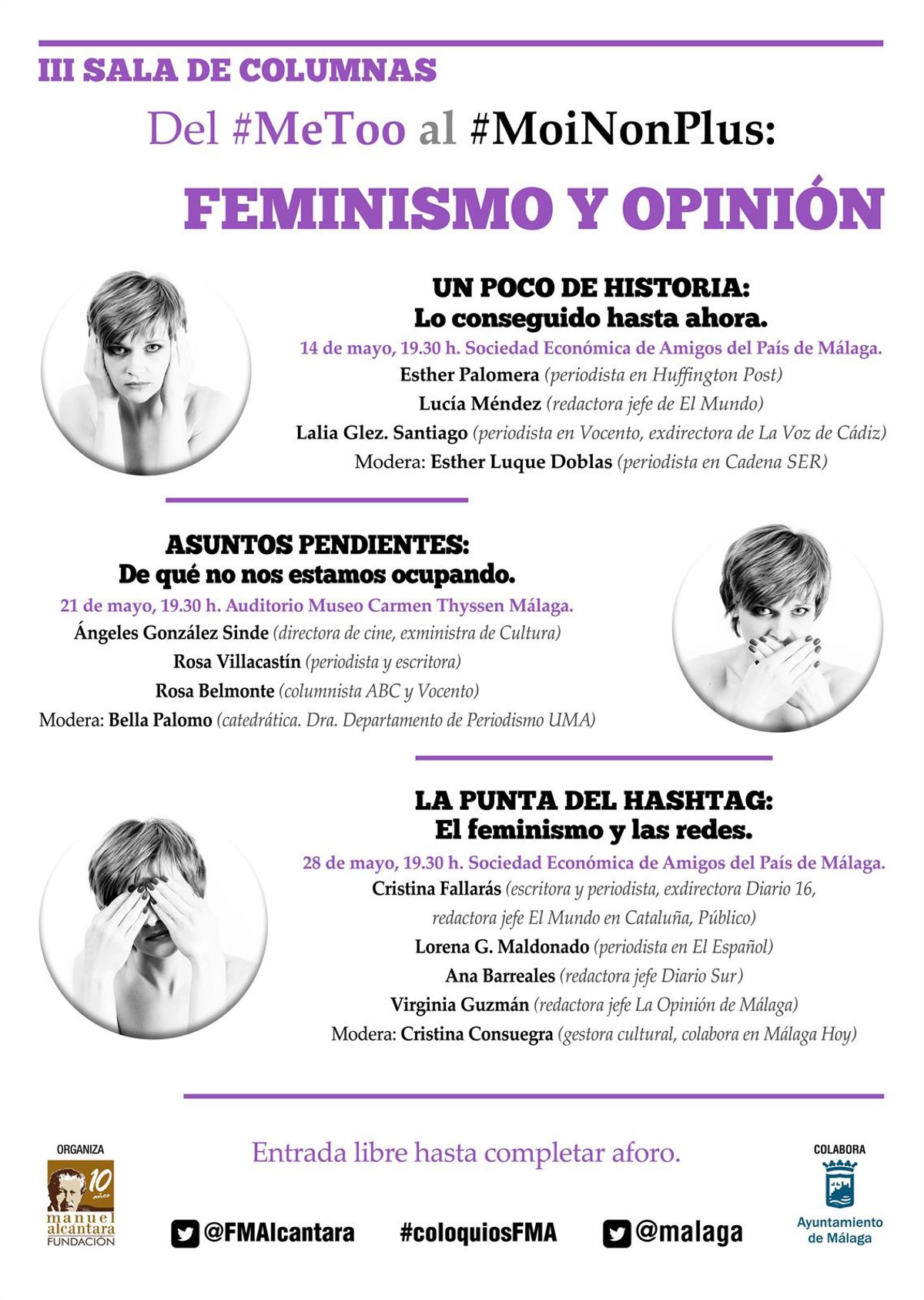 La próxima cita será el 21 de mayo en el Museo Carmen Thyssen y llevará por título 'Asuntos Pendientes: De qué no nos estamos ocupando'. La mesa redonda 'La punta del hashtag: El feminismo y las redes' cerrará este ciclo de conferencias el 28 de mayo en la Sociedad Económica Amigos del País.